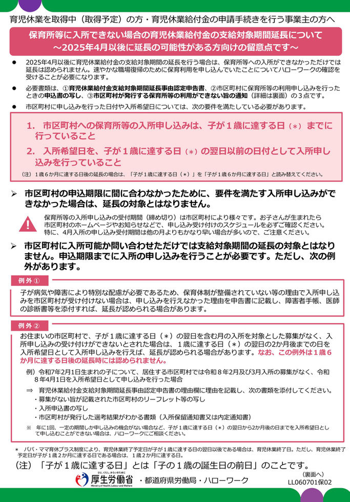 2025年04月01日改正 育児介護休業法改正ポイントのご案内